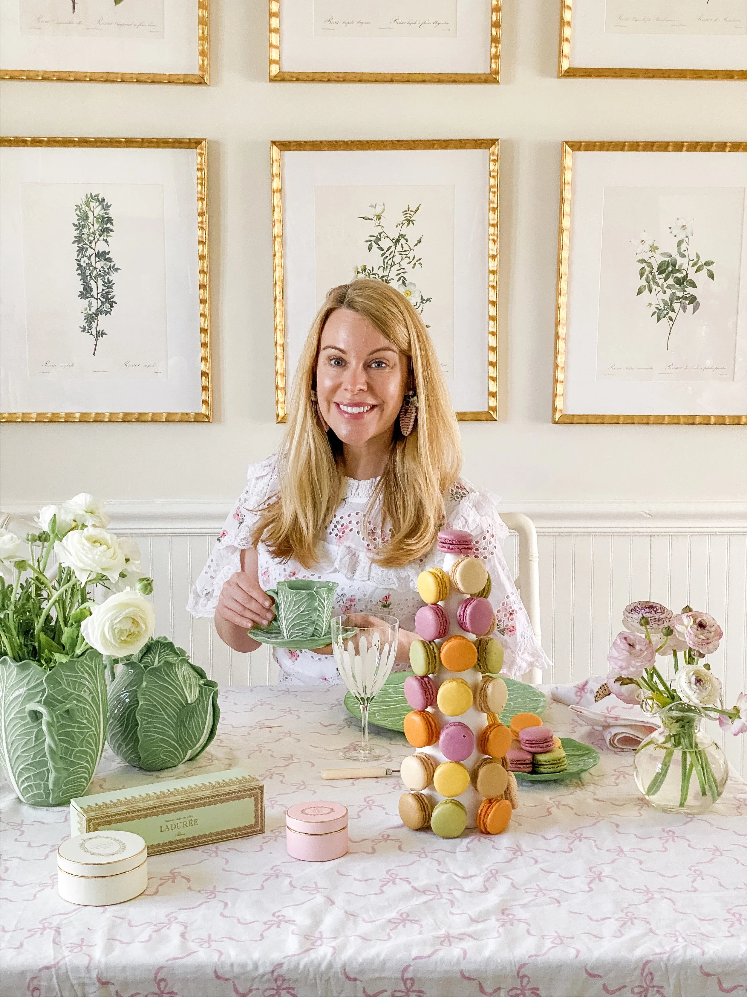 So it’s no surprise that I love collecting dishes and have an affinity for teacups and teapots in particular. This is hands down my favorite brand for serving tea and for unique place settings. Once I have my table set, I get to work in the kitchen plating my treats and selecting my tea. This is my favorite Parisian tea. But I also love this brand and this brand. And these are so luxurious that no strainer is required. For this afternoon tea I assembled my first macaron tower! In my opinion macarons and tea go hand in hand! Come back tomorrow and I’ll share how I assembled it and share my tips.